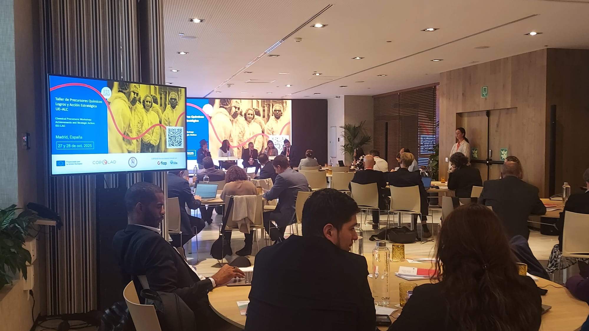 El Programa de Cooperación sobre drogas entre UE/América Latina y Caribe, COPOLAD III celebró los días 27 y 28 de octubre en Madrid el Taller de Precursores Químicos: Logros y Acción Estratégica UE–ALC, un encuentro que reunió a representantes gubernamentales, organismos internacionales y expertos técnicos para consolidar experiencias, promover buenas prácticas y definir los próximos pasos en la cooperación birregional sobre el control y la gestión sostenible de precursores químicos.